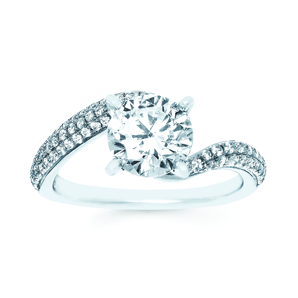 Engagement Ring Forever ElegantĀ® 1/3 Ctw. Diamond Semi Mount shown with 1 1/2 Ct. Round Center Diamond in 14K Gold